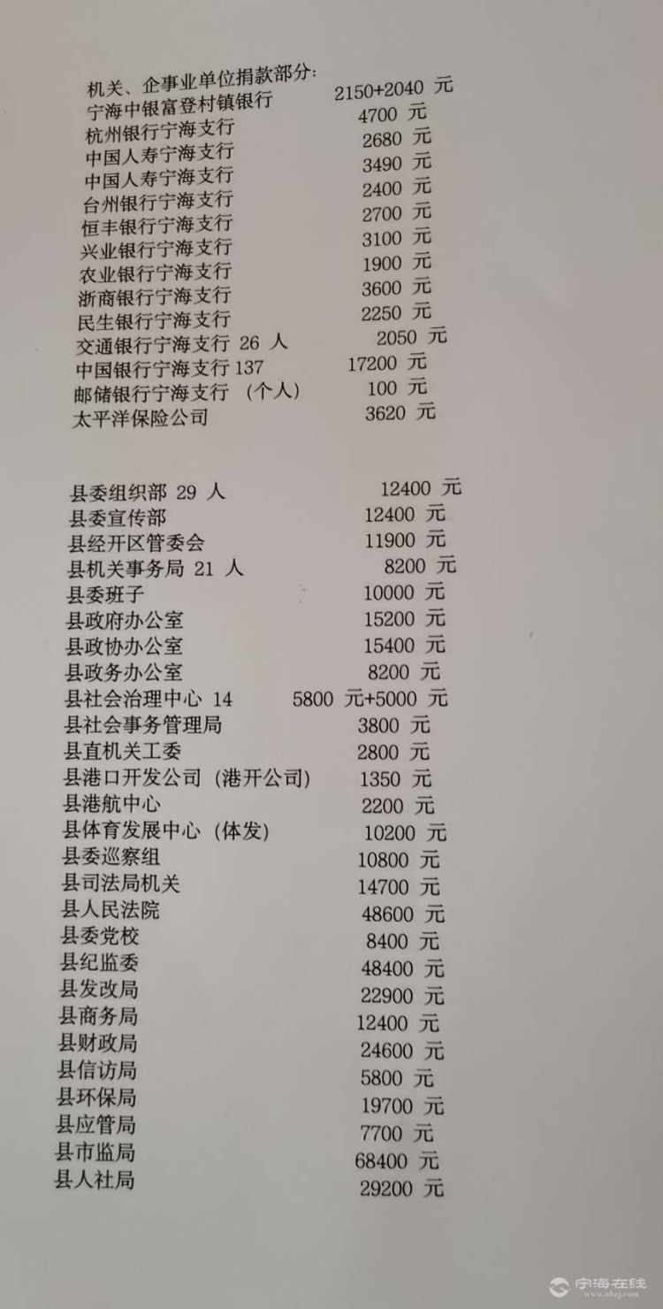 2023年宁海慈善一日捐(机关/企事业部分)