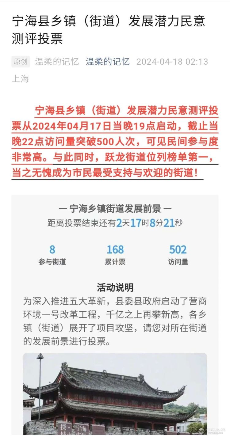 宁海县乡镇(街道)发展潜力测评投票