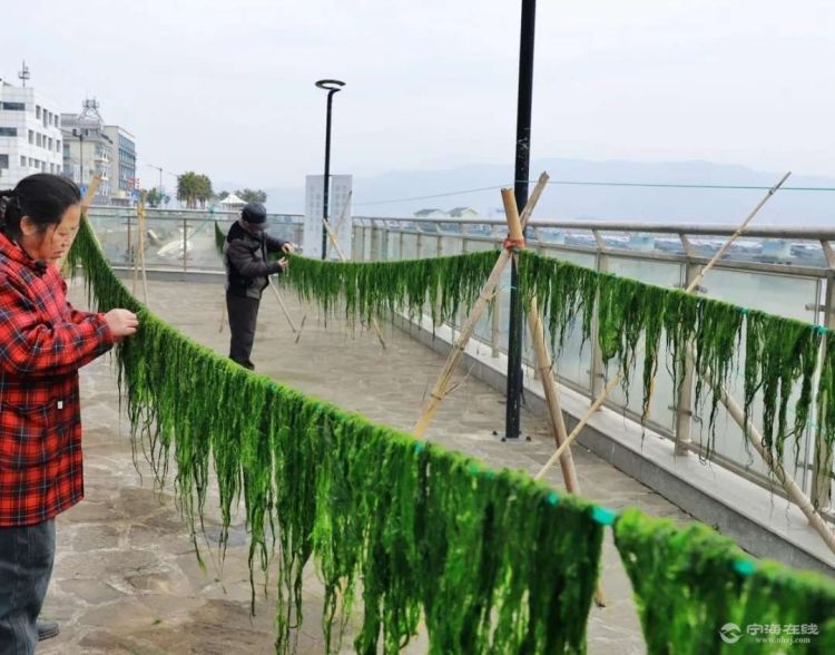 采收、清洗、晾晒……宁海湾沿海乡村,迎来了冬海苔采收季节。 滩涂上、海岸边,呈现一派繁忙景象,村民们趁连日晴好天气加紧采收“新年第一鲜”,供应春节市场,奏响了新年里的“丰收曲”。 腊月里的海苔刚长成,产量比较少,可品质是最好的,吃起来口感鲜甜脆嫩。 当地人将晒干的海苔称为苔条,晒苔条既需要阳光的催化,还需要西北风的吹拂,这样苔条不仅一天就晒成,而且晒出的苔条颜色翠绿,品质好。 从宁海湾沿岸放眼望去,一排排鲜亮翠绿的海苔依次铺开,成为斑斓海岸线上一道靓丽的风景,村民们穿梭在海岸与晒场间。 海苔根据生长季节,可分为冬海苔和春海苔,冬海苔量少价高,晒干后的市场价为每公斤240元左右。作为宁海湾的特色产业,采收海苔已成为当地村民增收的一条途径。 宁海湾沿海乡村采收海苔已有200多年的历史,待到开春后海苔旺发,家家户户都会跟着潮水赶海抢收,一天收入可超千元。 “产业旺”带动“乡村兴” 经过几年的发展,强蛟镇海苔产业渐成规模,通过搭建销售平台,合作社对海苔进行统一收购,年收购量达10万公斤。 来源:甬派
