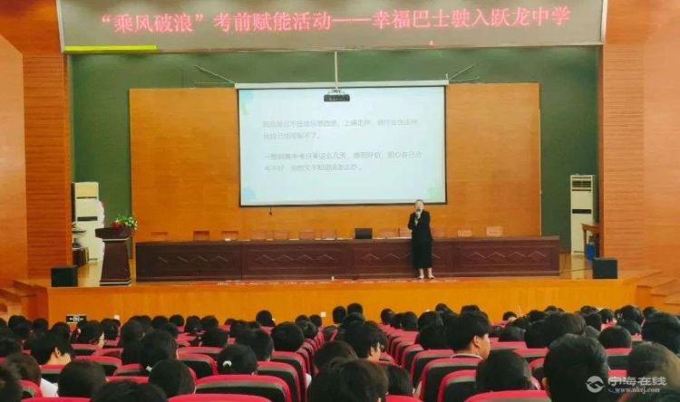 近日,宁波市中小学生幸福成长促进计划系列活动之“幸福巴士”驶入跃龙中学。此次活动由县教育局、县学生成长指导中心主办,旨在为即将参加中考的九年级学子注入前行的力量,为全校师生搭建心灵互动的桥梁。