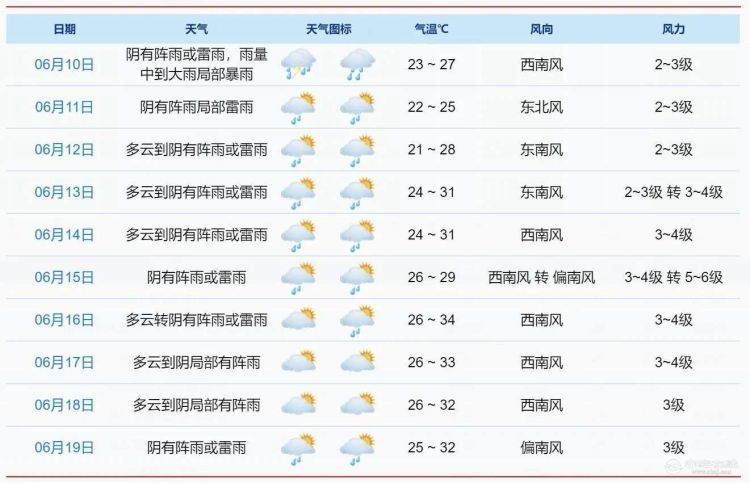 今天是高考最后一天,降水带来不便,建议考生和家长朋友关注临近预报预警,出行留好提前量,注意安全。雨水打压下,今明两天气温在22~29℃左右,还是比较舒适的。后天起仍多阵雨或雷雨天气,雨势稍有缓和,但要注意防范累积降水的风险;气温则又会回到闷热的状态。