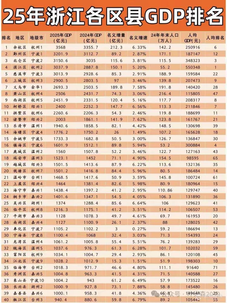 浙江各区县GDP排名